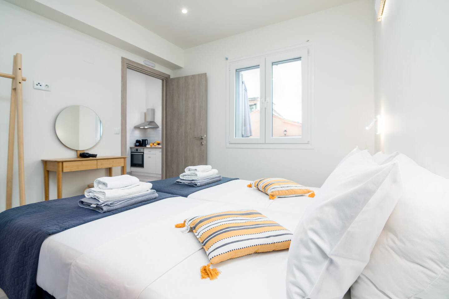 Bedrooms: 2 air-conditioned rooms with queen size beds, full length mirror, bedside table and open-plan wardrobe hanger. Guests will enjoy a good night’s sleep on lovely comfortable bedding, quality linens, and spotless fluffy towels.