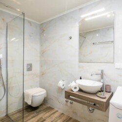 BATHROOM: modern décor with shower , WC and makeup mirror.