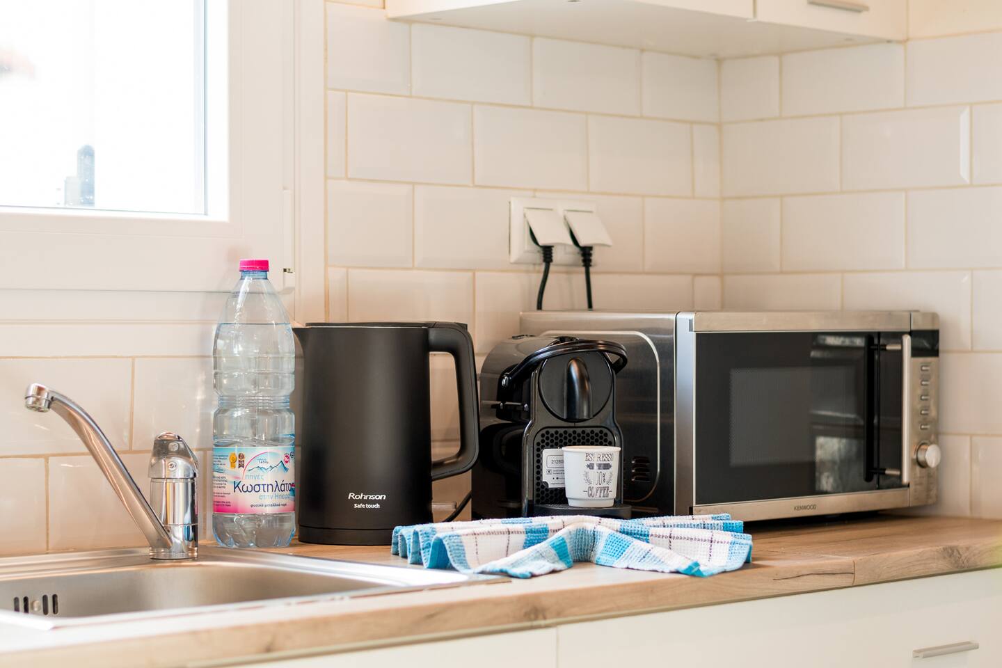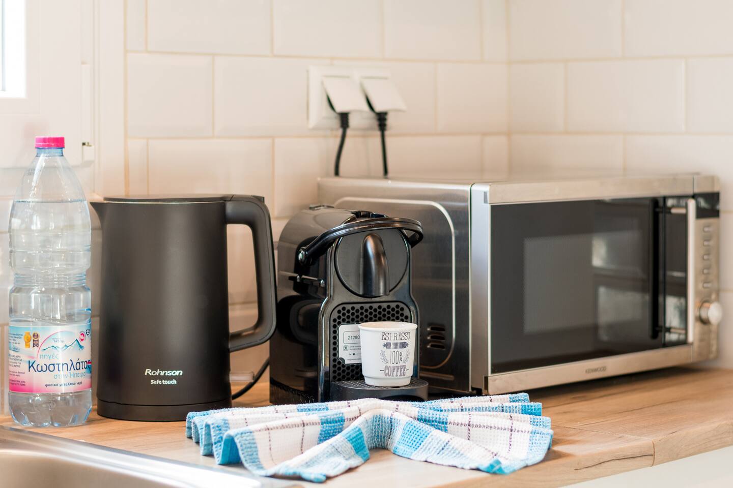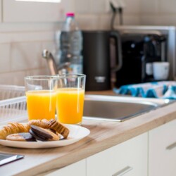 KITCHEN: The kitchen is equipped with the most modern equipment and everything you need to prepare delicious meals with electric stoves, toaster, refrigerator, kettle, Nespresso coffee machine with capsules. We also provide basic products such as tea, coffee and cooking oils.